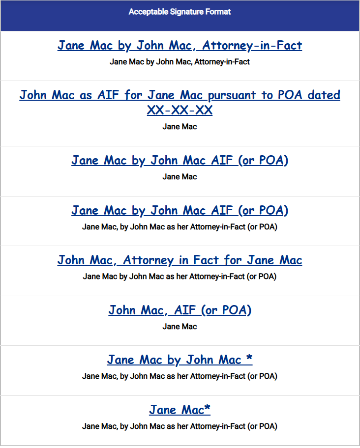 Acceptable Signing format at closing: